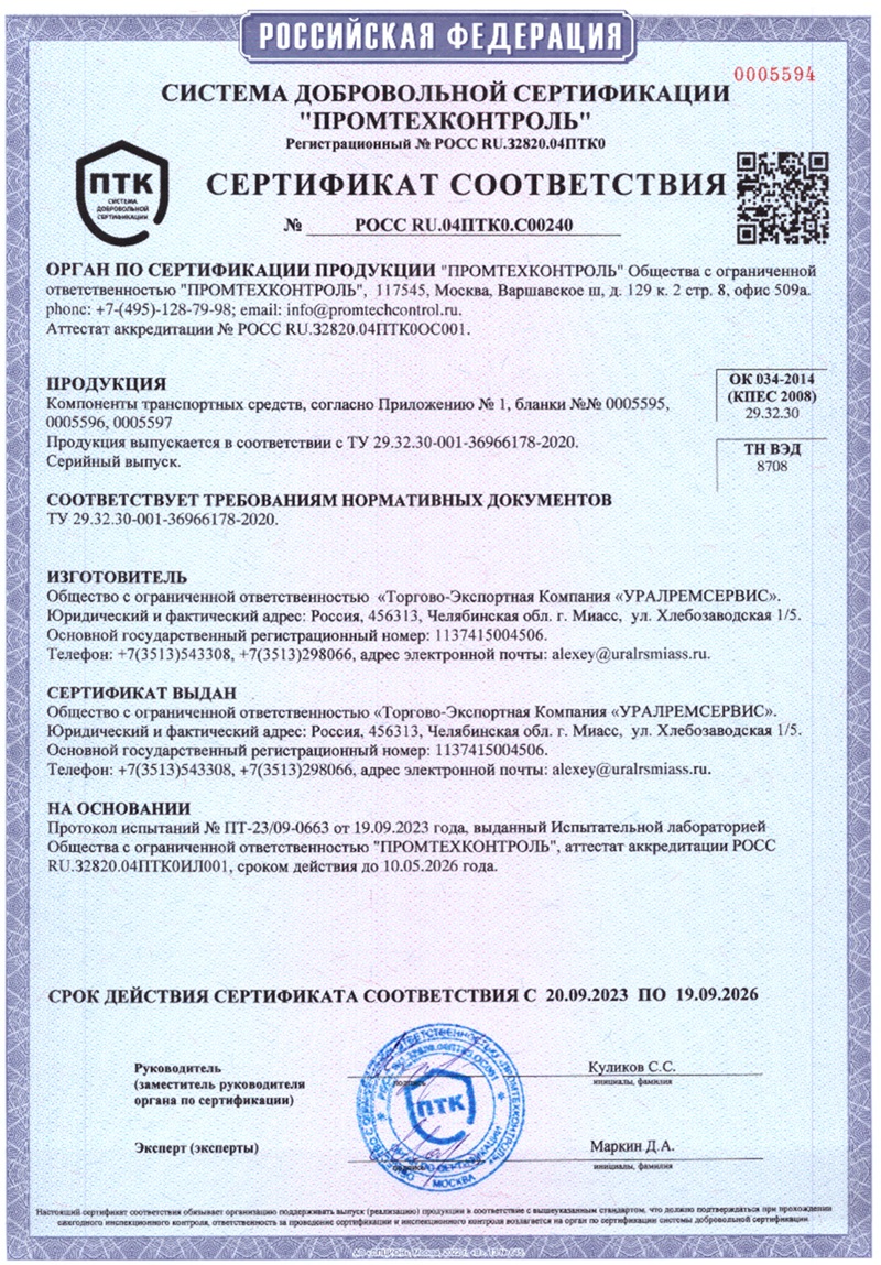На все запчасти нашего производства мы предоставляем гарантию так же как завод-производитель. Наша компания имеет сертификаты качества на выпускаемую продукцию, что значительно отличает нас среди конкурентов.