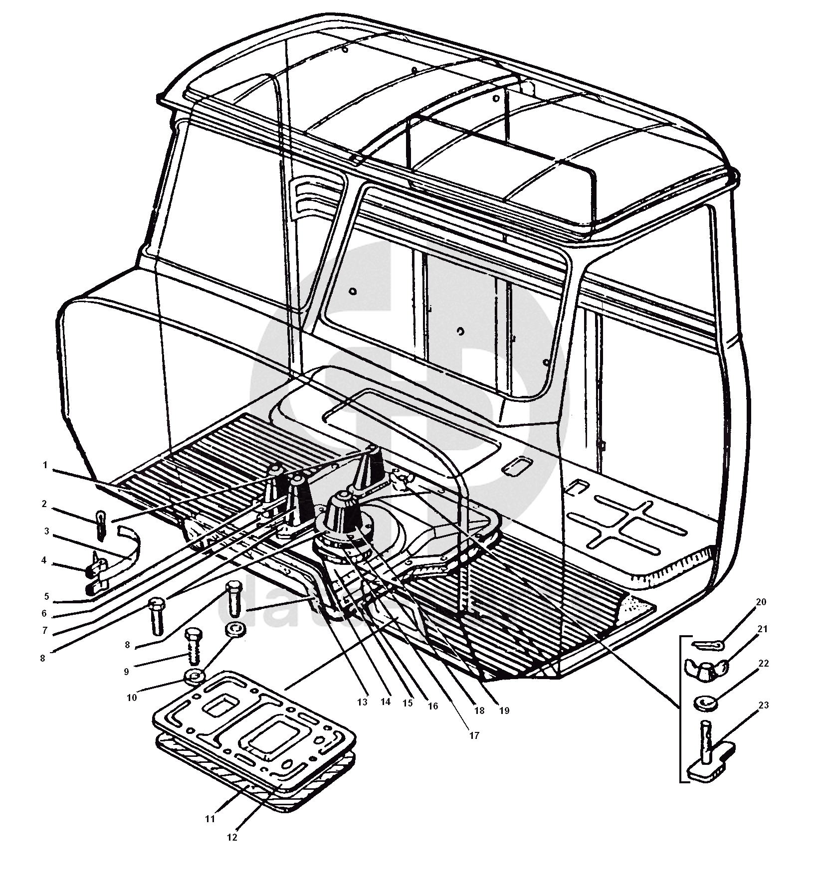 Уплотнители рычагов и коврики пола кабины