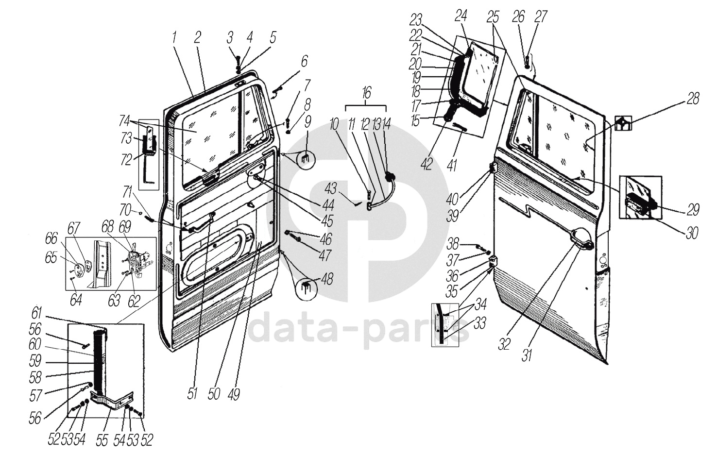 Стекло опускное двери