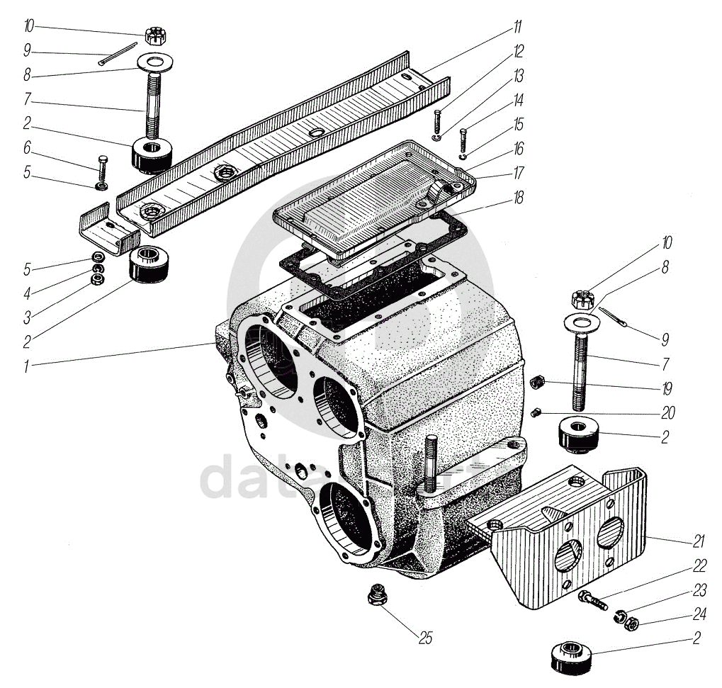 Картер и подвеска раздаточной коробки УРАЛ-55571-1121-70
