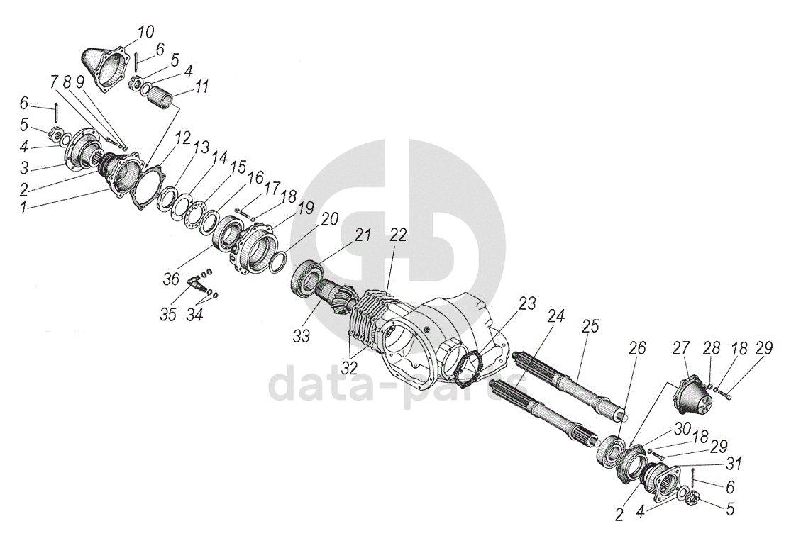 Проходной вал редуктора главной передачи УРАЛ-55571-1121-70