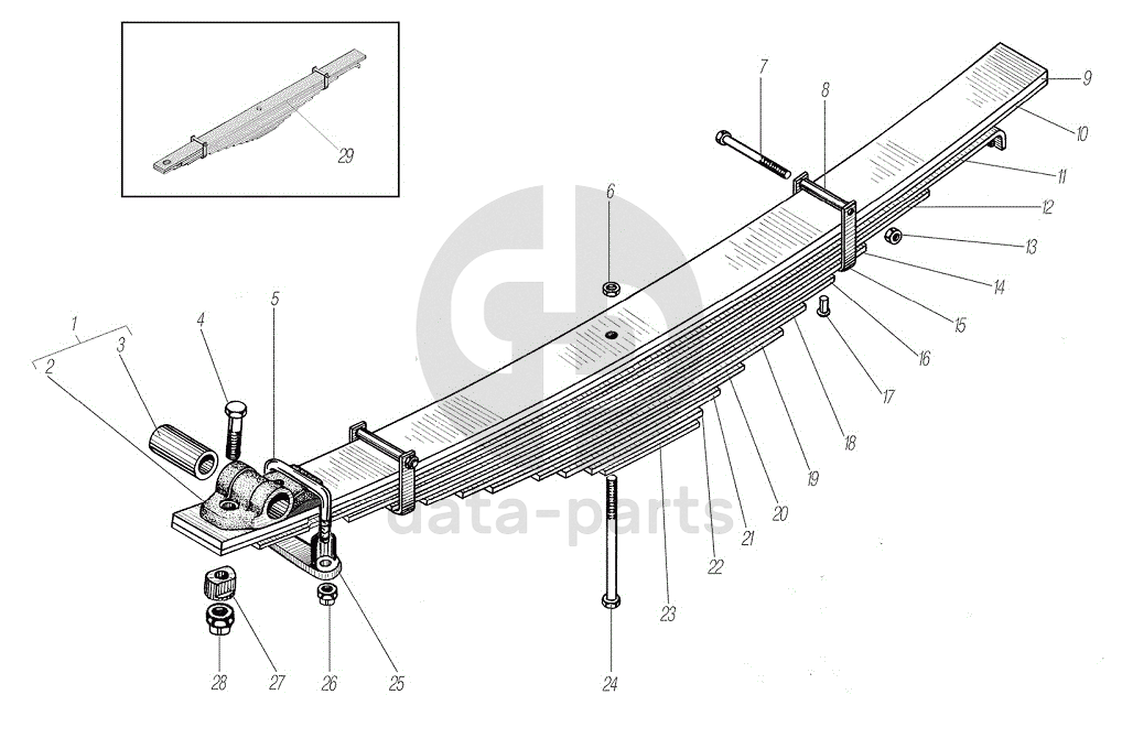 Рессора УРАЛ-55571 передняя (12 листов) L=1612мм без ушка