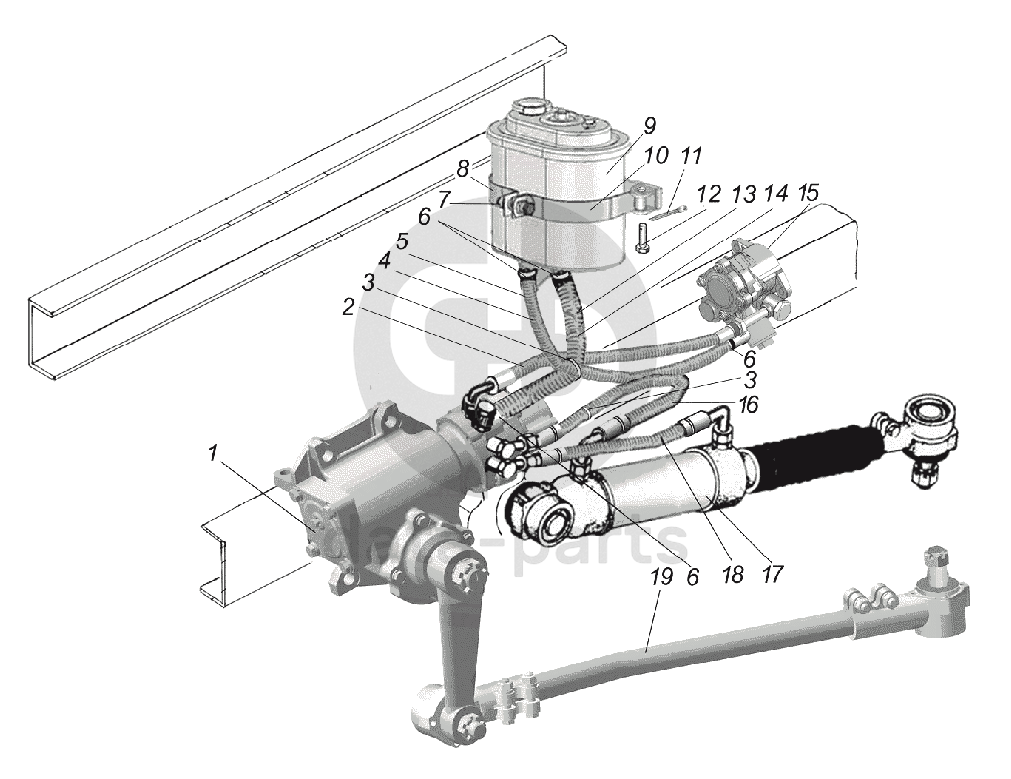 Гидроусилитель руля УРАЛ в сборе усиленный палец (с 2003г.)