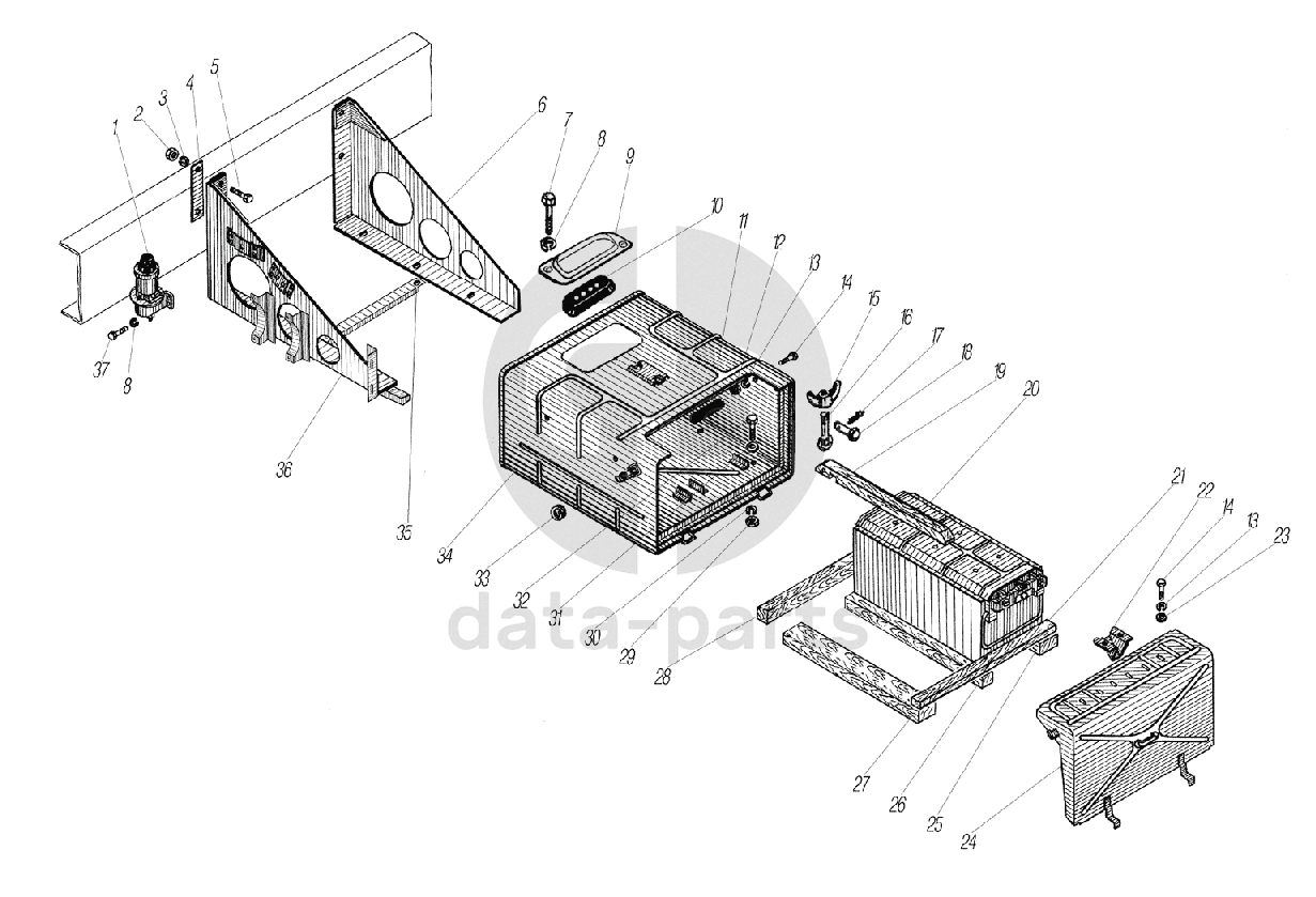 Установка контейнера аккумуляторных батарей УРАЛ-55571-1121-70
