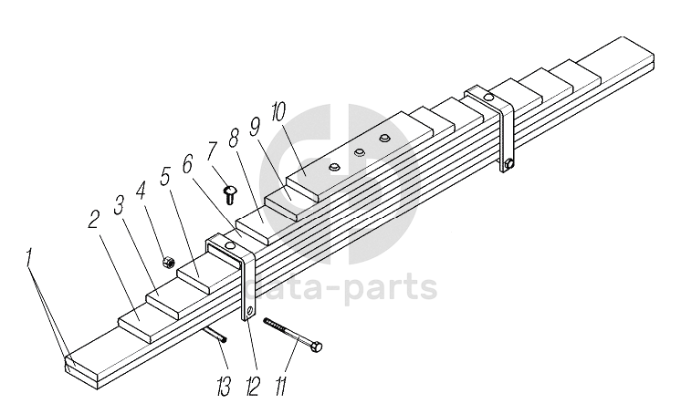Задняя рессора на автомобили Урал 4320-0001912-60, Урал 4320-0001911-60, Урал 4320-0001916-60, Урал 4320-0001922-60, Урал 4320-0001951-60, Урал 4320-0001952-60, Урал 4320-0001953-60, Урал 4320-0001934-60, Урал 4320-0001936-60 УРАЛ-4320-60