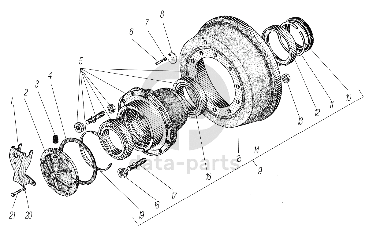 Ступица колеса и тормозной барабан среднего моста (без АБС) УРАЛ-4320-60