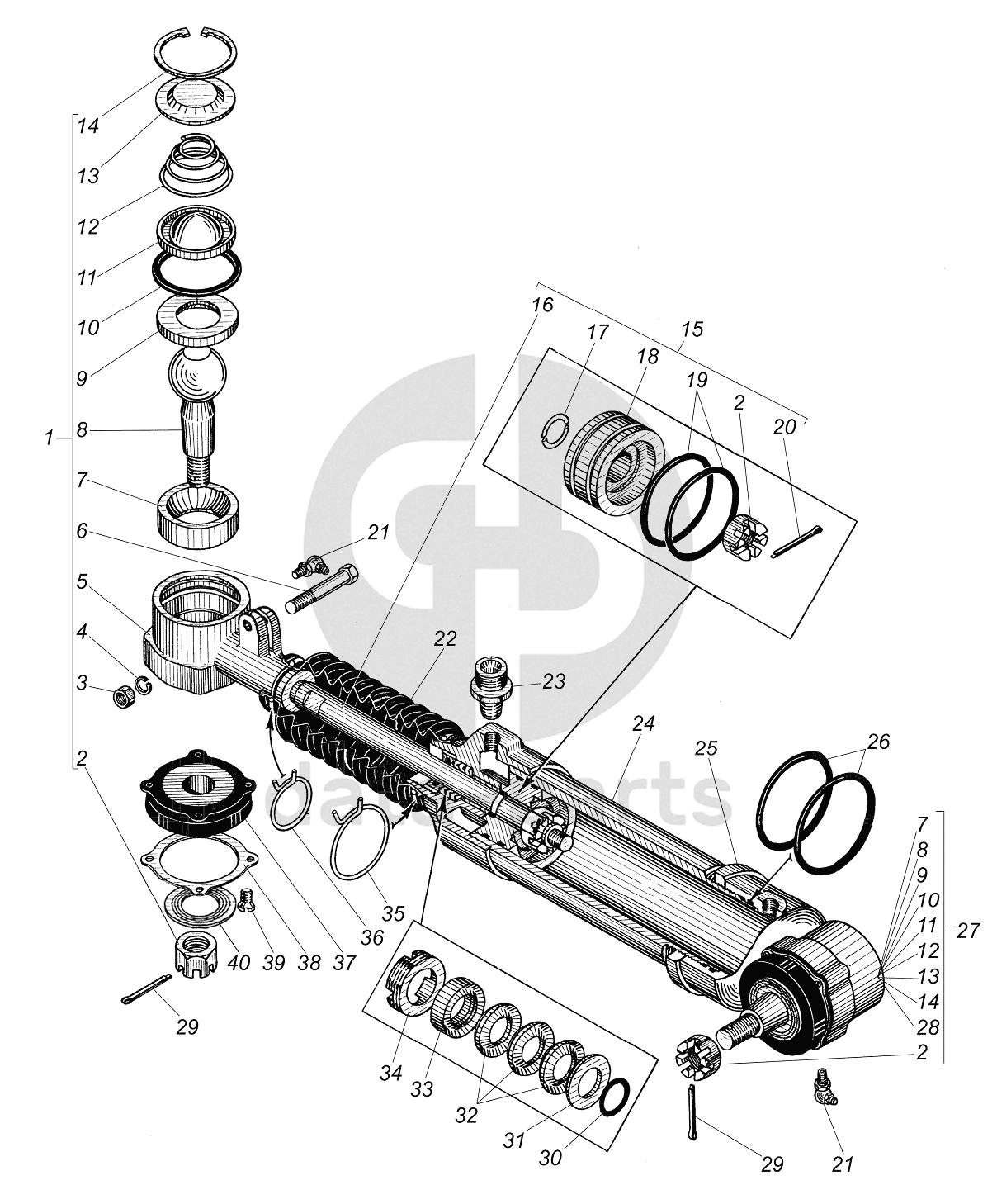 Цилиндр гидроусилителя с крышкой и втулкой в сборе