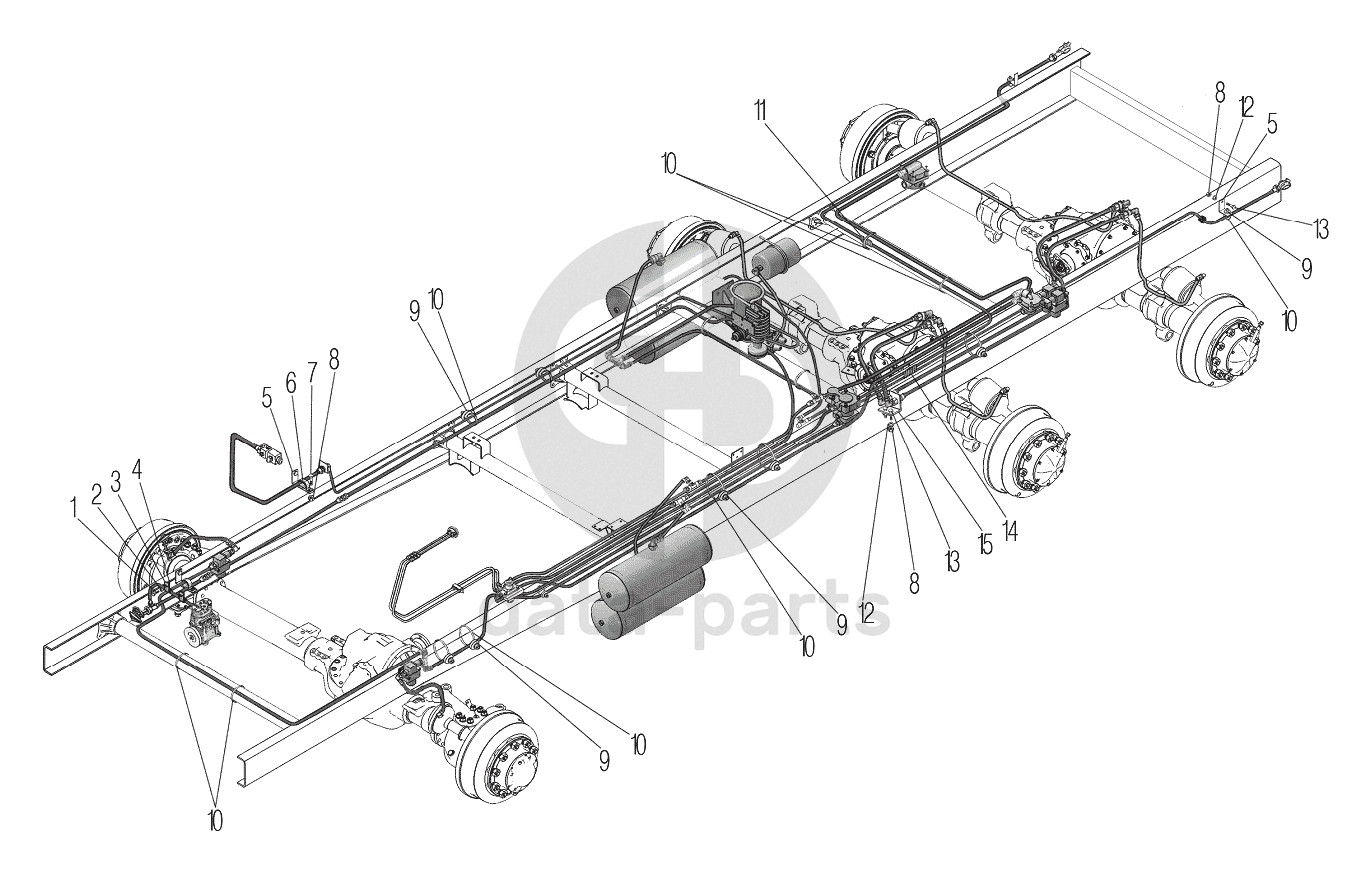 Крепление трубопроводов и шлангов пневматического привода рабочих тормозо