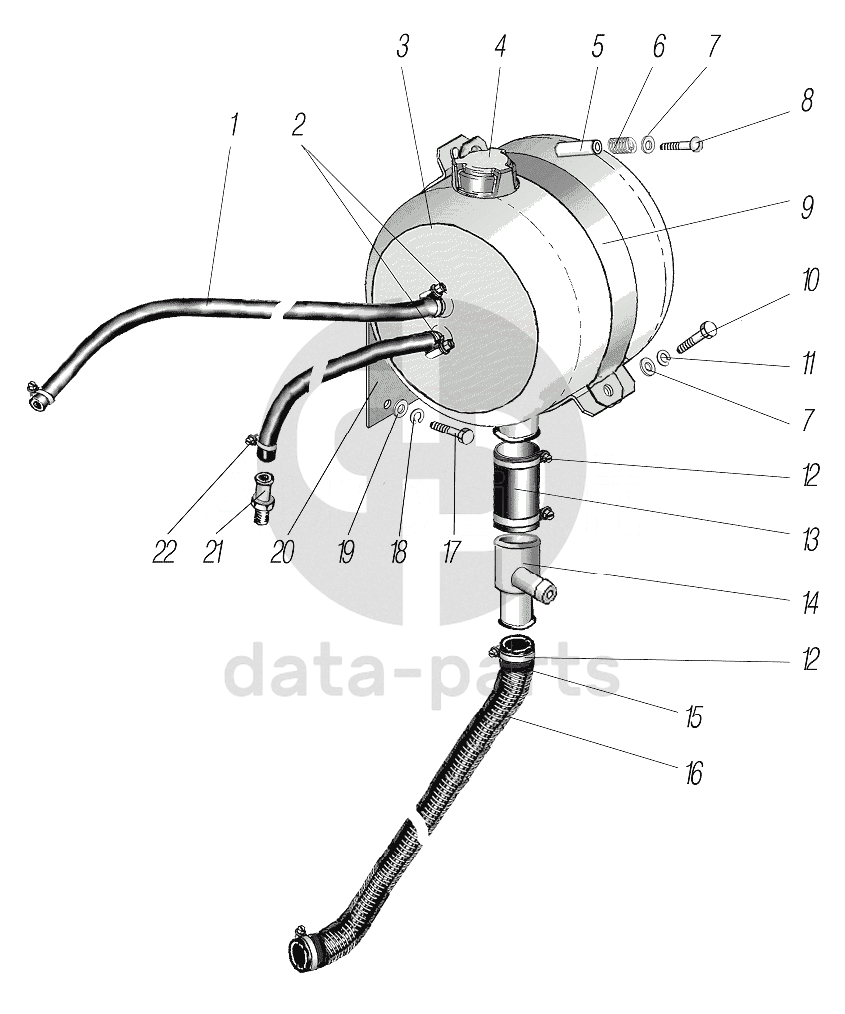 Установка расширительного бачка для автомобилей 4320-0000110-61, 4320-0000111-61И03, 4320-0001112-61Р02, 5557-0001122-60, 55571-0001121-60Р02 УРАЛ-4320-61