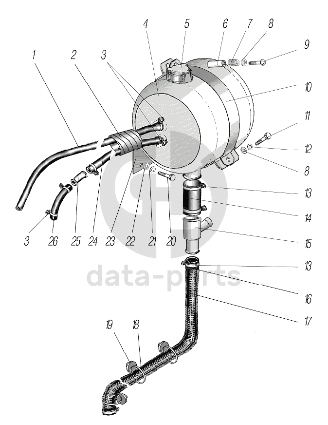Установка расширительного бачка для автомобилей 4320-0000110-71, 5557-0001152-70И03, 55571-0001121-70И03 УРАЛ-4320-61