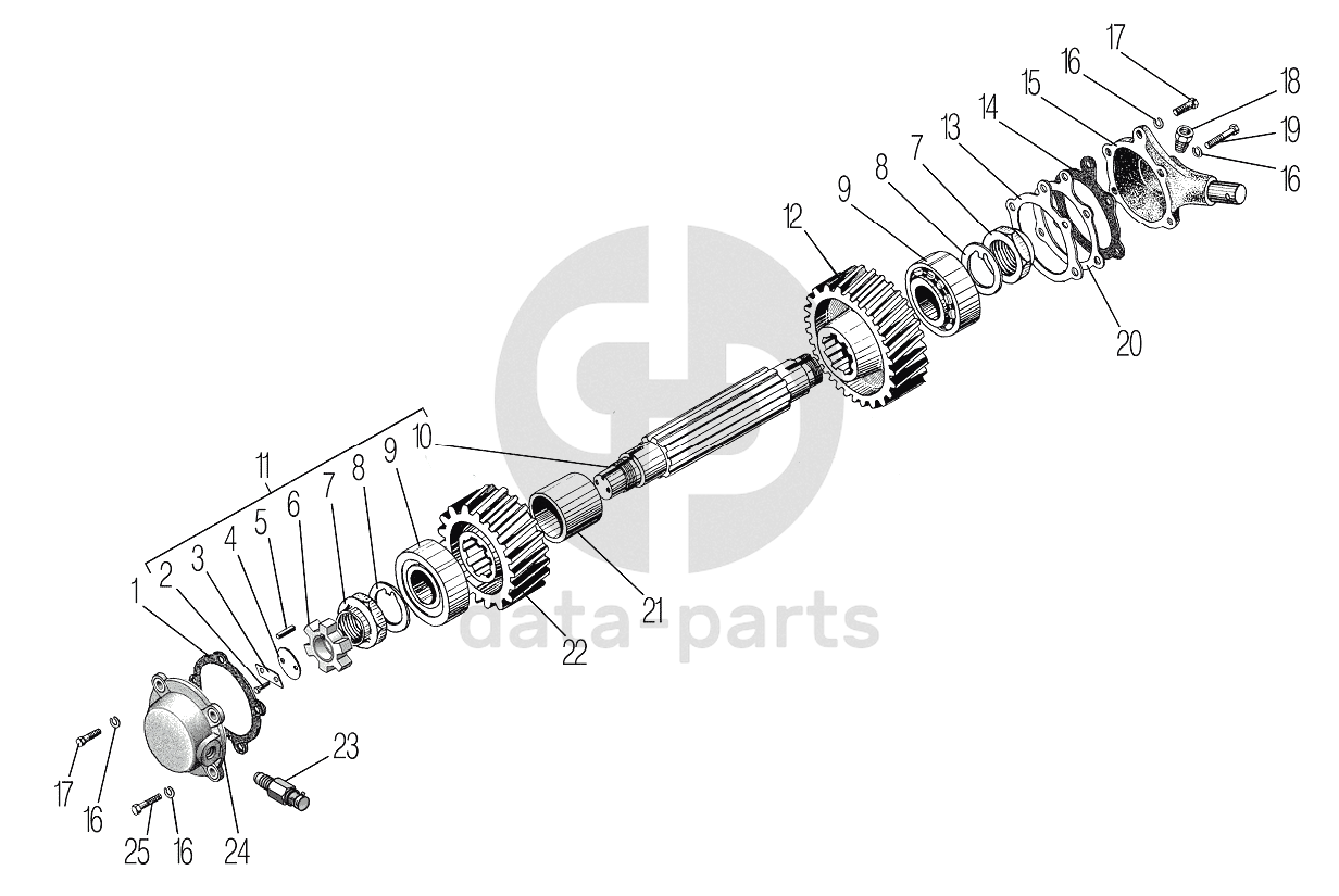 Крышка заднего подшипника промежуточного вала с осью рычага ручного тормоза в сборе