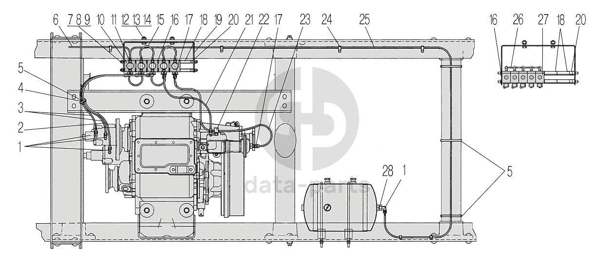 Установка пневмоуправления раздаточной коробкой и коробкой дополнительного отбора мощности для автомобилей 4320-0000110-71, 5557-0001152-70И03, 4320-0000110-61 УРАЛ-4320-61