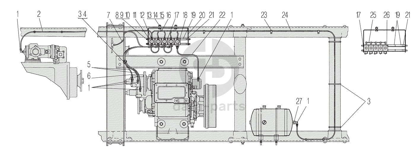 Установка пневмоуправления раздаточной коробкой и коробкой отбора мощности для автомобилей 55571-0001121-60Р02, 55571-0001121-70И03 УРАЛ-4320-61
