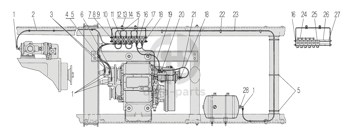 Установка пневмоуправления раздаточной коробкой, коробкой дополнительного отбора мощности и коробкой отбора мощности для автомобиля 5557-0001122-60