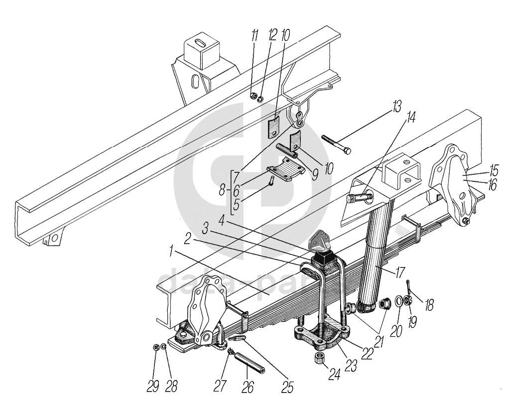 Хомут УРАЛ крепления рессоры передней левый (с 2003г.)