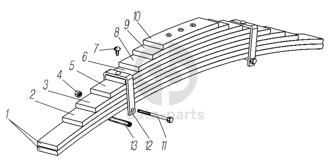 Задняя рессора для автомобилей 5557-0001122-60, 5557-0001152-70И03, 55571-0001121-60Р02, 55571-0001121-70И03 УРАЛ-4320-61