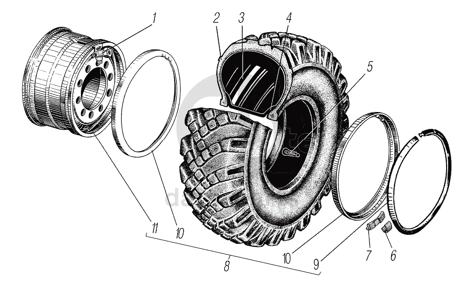 Колесо и шина для автомобилей 4320-0000110-61, 4320-0000111-61И03, 4320-0001112-61Р02, 4320-0000110-71 УРАЛ-4320-61