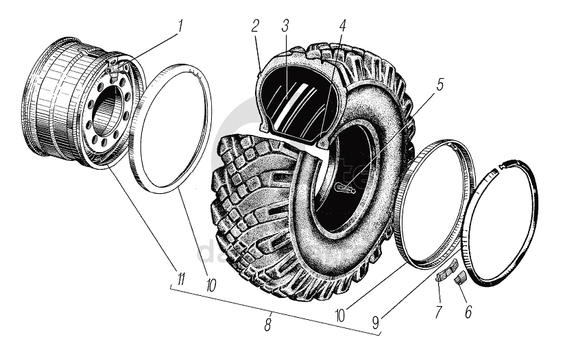 Колесо и шина для автомобилей 5557-0001122-60, 55571-0001121-60Р02 УРАЛ-4320-61