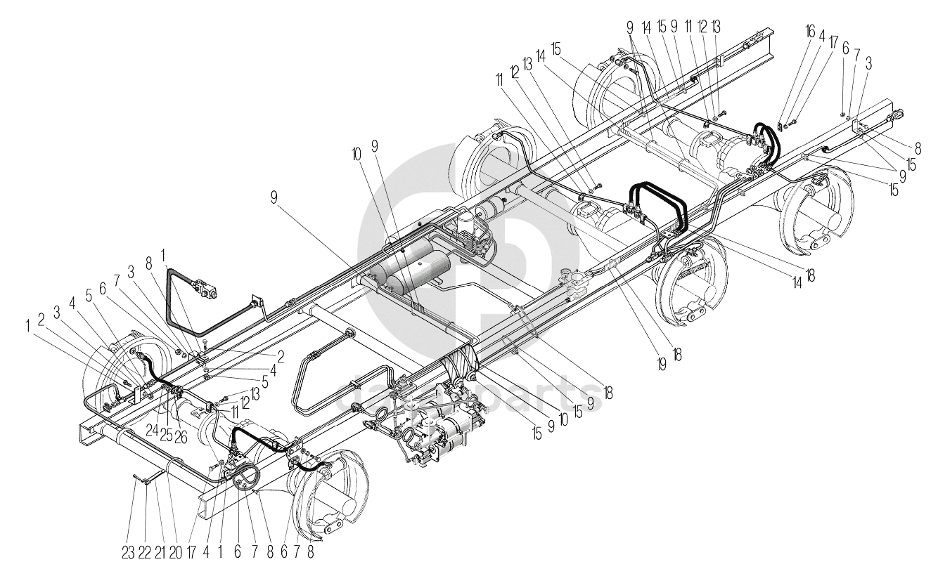 Крепление трубопроводов и шлангов пневмогидравлического привода рабочих тормозов для автомобилей 4320-0000110-71, 5557-0001152-70И03, 55571-0001121-70И03