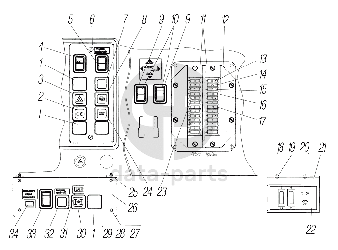 Щитки выключателей и блоки предохранителей УРАЛ-4320-61