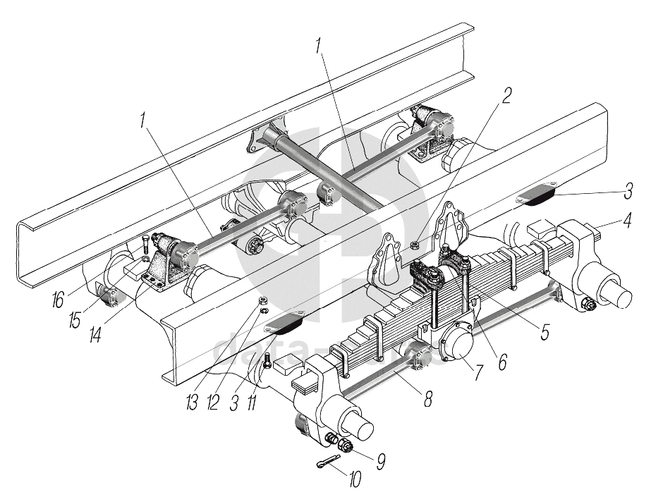 Ось УРАЛ балансира с кронштейнами и балансирами в сборе