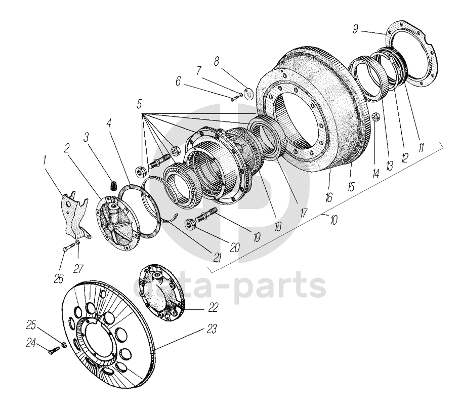 Ступица колеса и тормозной барабан переднего и заднего моста (с АБС)