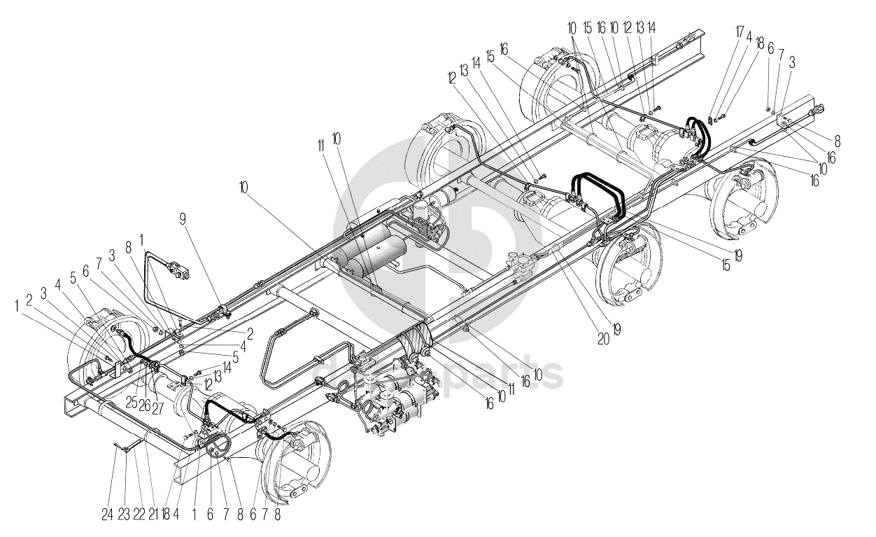 Крепление трубопроводов и шлангов пневмогидравлического привода рабочих тормозов