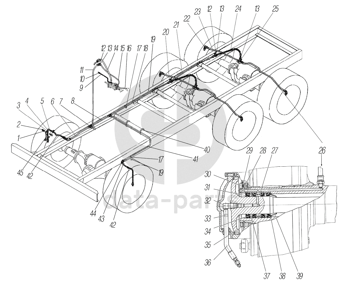 Система регулирования давления воздуха в шинах УРАЛ-43204-1111-70