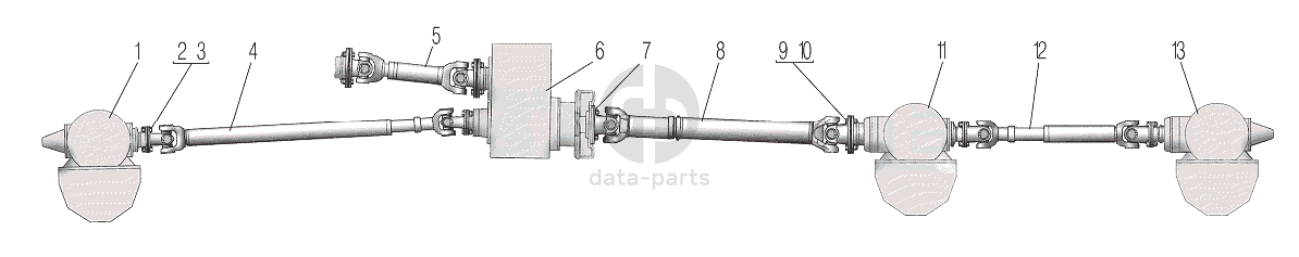 Карданный вал УРАЛ средний (L=1930 мм, с 2013 г. в, фланцы с торцевыми шлицами, длиннобазовые а/м)