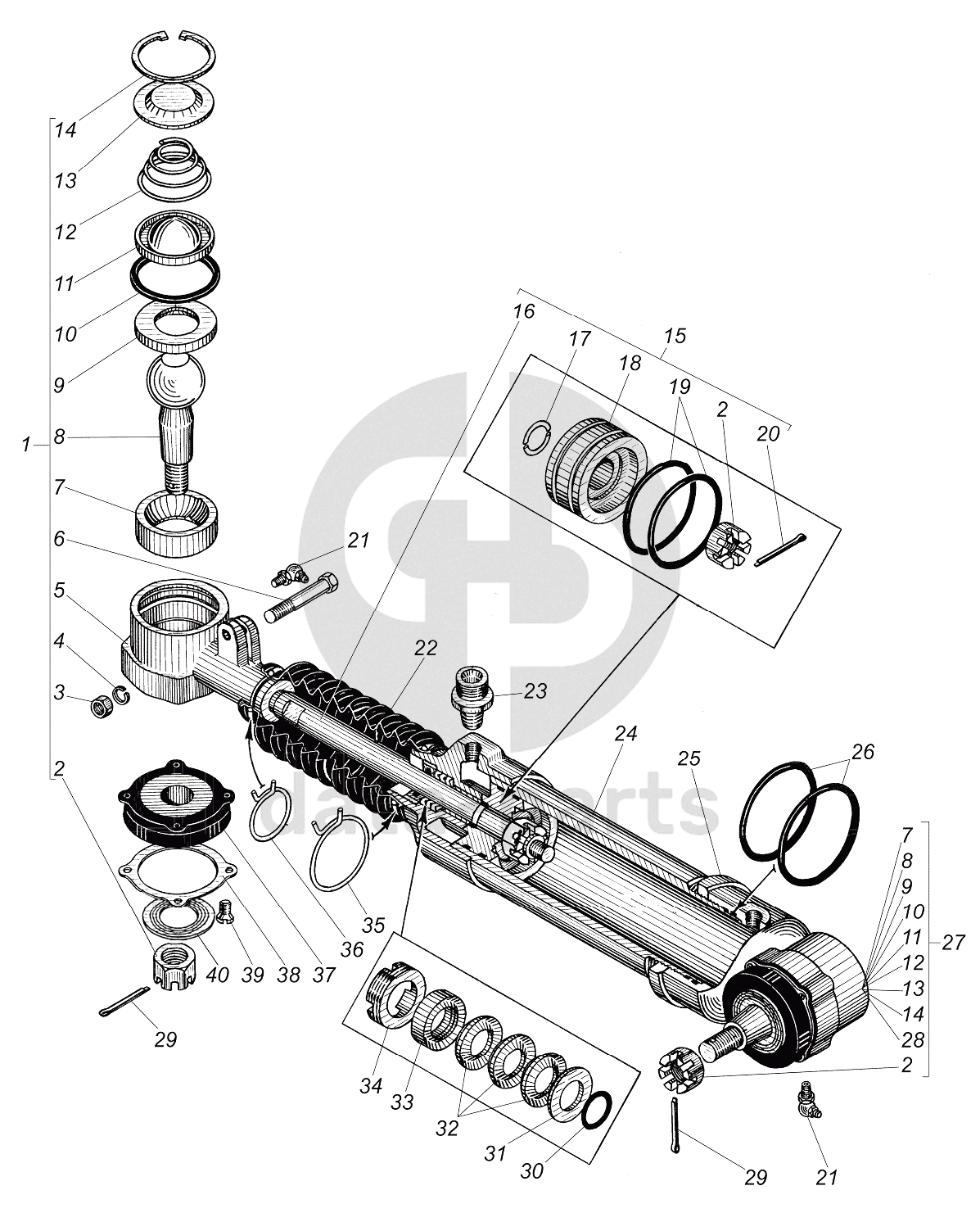 Цилиндр гидроусилителя с крышкой и втулкой в сборе