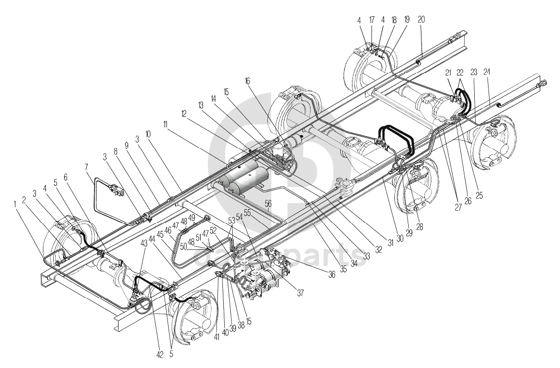 Трубопроводы и шланги пневмогидравлического привода рабочих тормозов