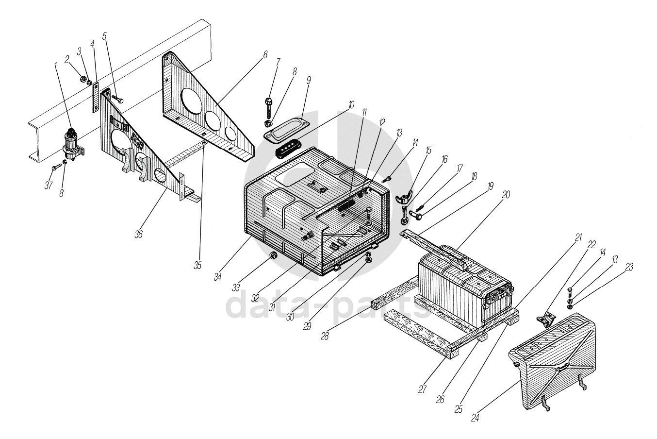 Установка контейнера аккумуляторных батарей УРАЛ-43204-1153-70