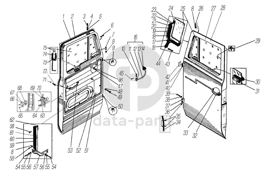 Фиксатор УРАЛ двери правый в сборе (кабины бескапотные)