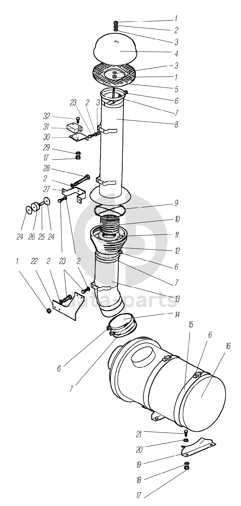Установка воздушного фильтра и воздухозаборной трубы УРАЛ-44202-3511-80