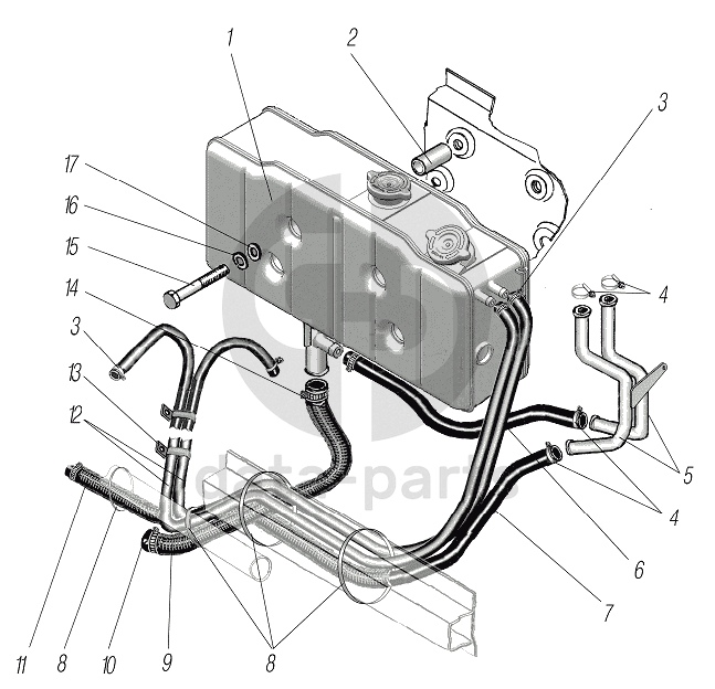 Установка расширительного бачка УРАЛ-44202-3511-80