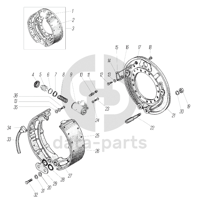 Ось УРАЛ колодки тормозной