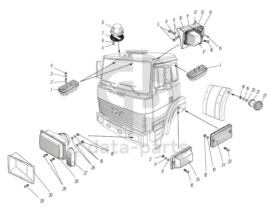 Установка фар, фонарей знака автопоезда, габаритных и указателей поворота