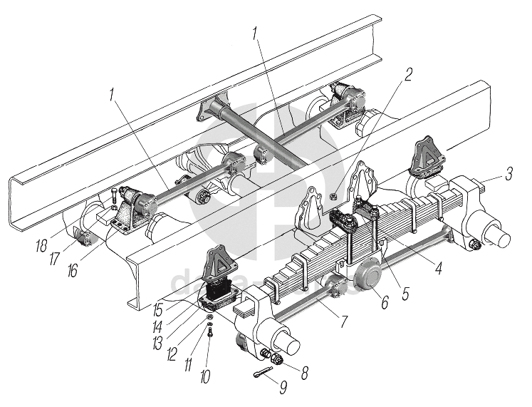 Ось УРАЛ балансира с кронштейнами и балансирами в сборе