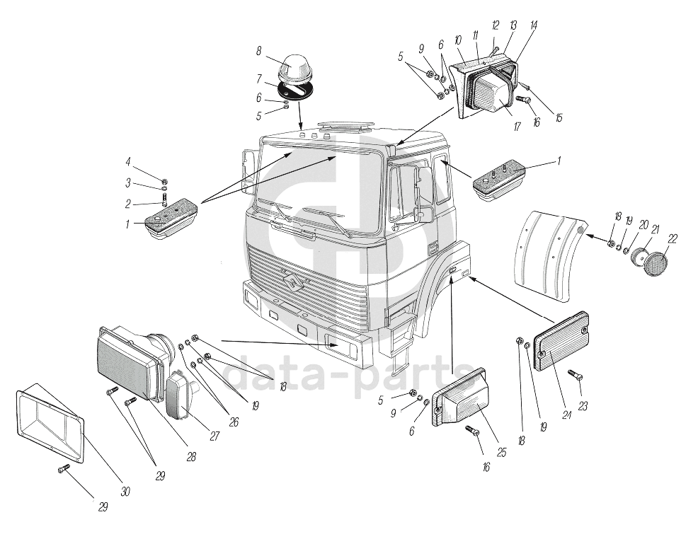 Установка фар, фонарей знака автопоезда, габаритных и указателей поворота