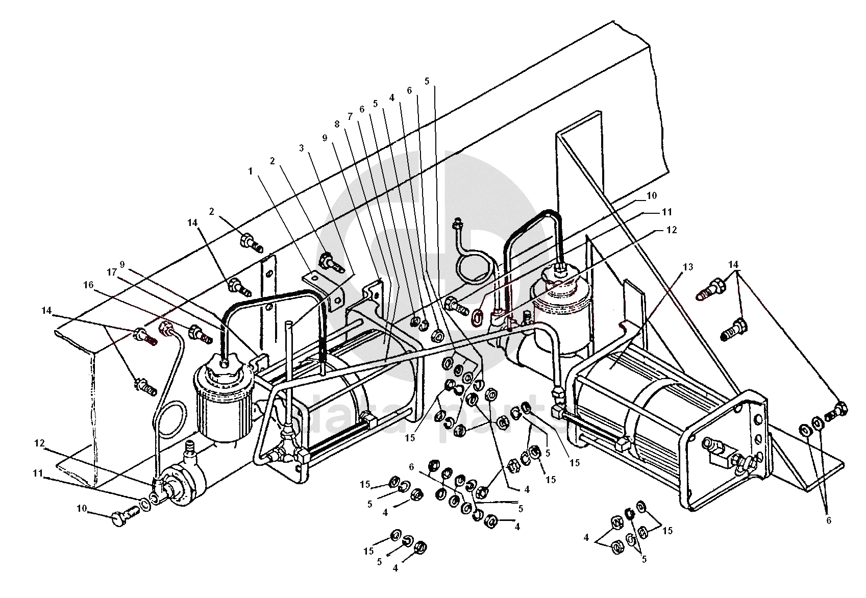 Установка пневматических усилителей с главными тормозными цилиндрами УРАЛ-5557-31