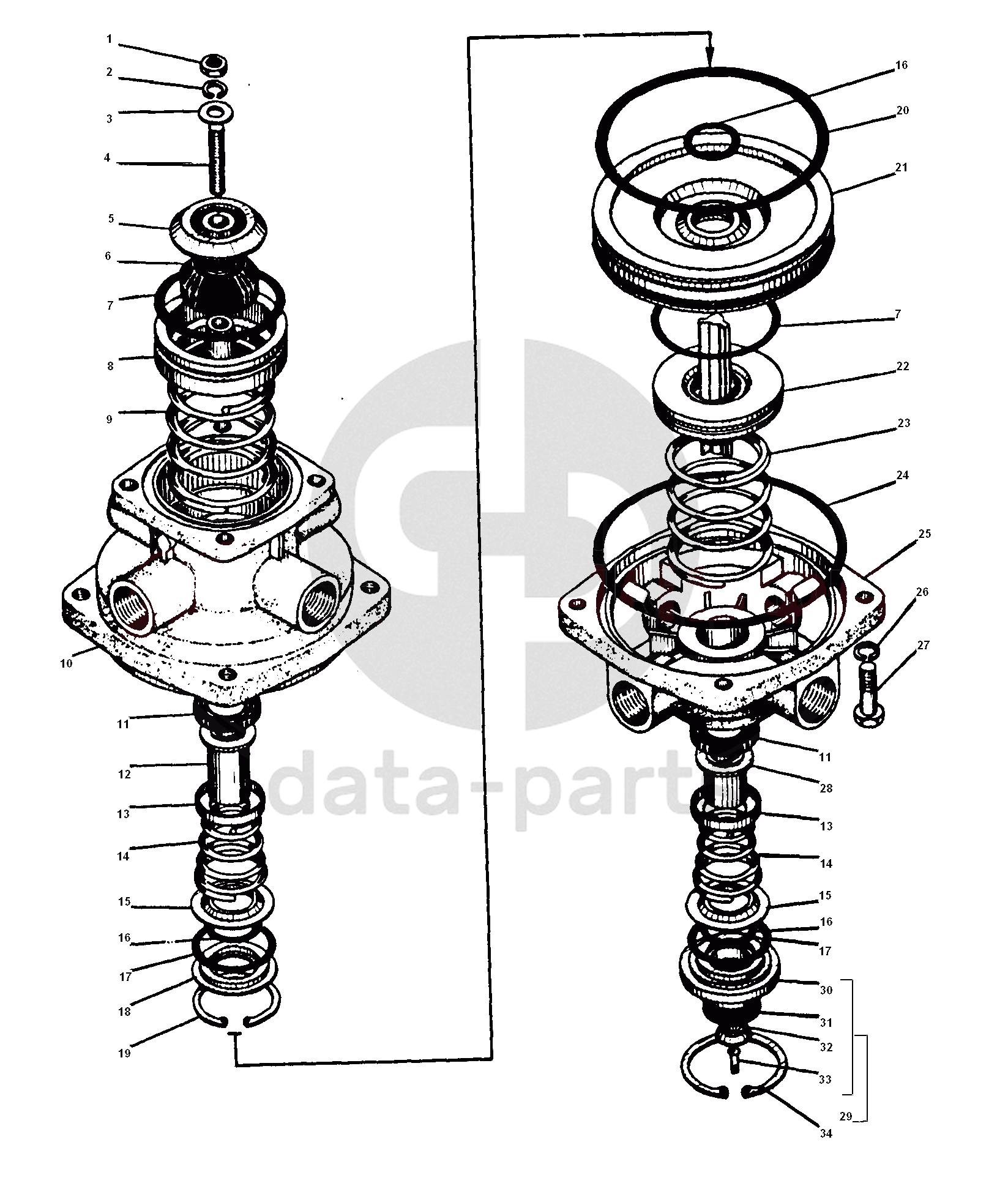 Детали тормозного двухсекционного крана УРАЛ-5557-31