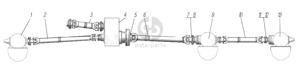 Карданный вал УРАЛ средний (L=1930 мм, с 2013 г. в, фланцы с торцевыми шлицами, длиннобазовые а/м)