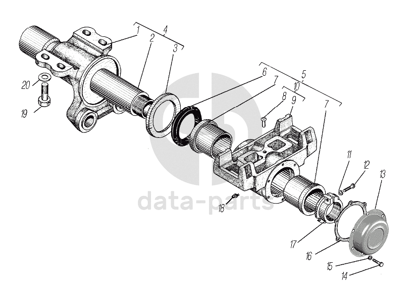 Ось балансира задней подвески в сборе с кронштейнами и балансиром УРАЛ-4320-6951-74