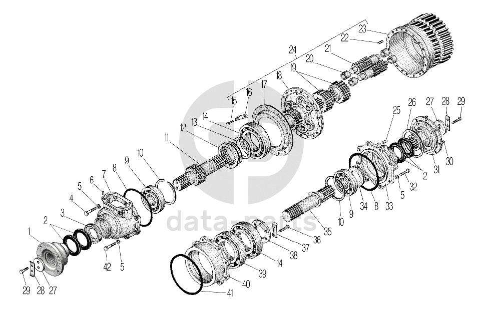 Вал привода переднего моста, дифференциал и вал привода заднего моста раздаточной коробки