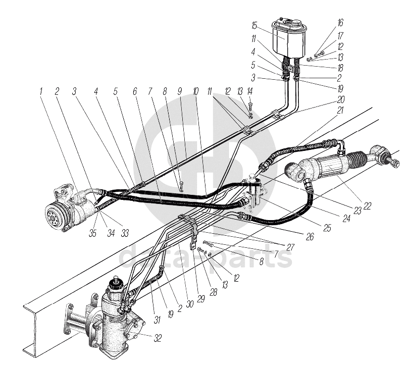 Гидравлическая система рулевого управления для автомобилей с двигателем ЯМЗ-7601 УРАЛ-532361