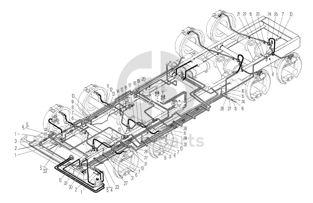 Крепление трубопроводов и шлангов пневмогидравлического привода рабочих тормозов для автомобилей Урал 542301