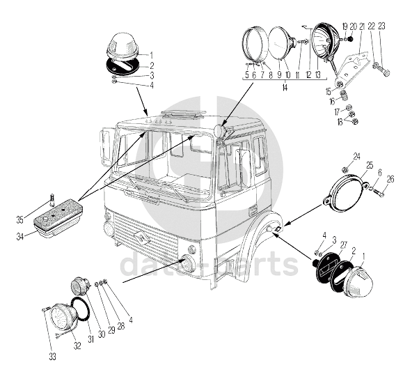 Установка фар, фонарей знака автопоезда, габаритных и указателей поворота