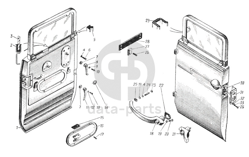 Дверь автомобиля Урал-375 (Рис. 146) УРАЛ-375