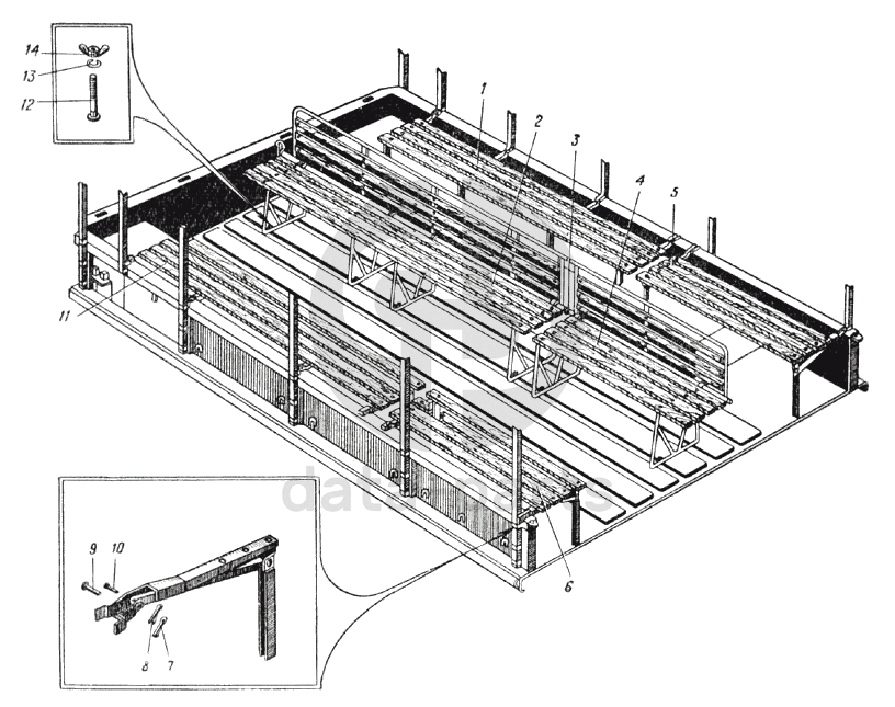 Сиденья платформы автомобиля Урал-375Д (Рис. 156)