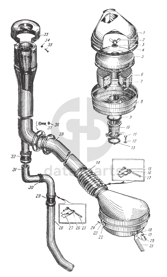 Воздушный фильтр автомобиля Урал-375Д (Рис. 27) УРАЛ-375